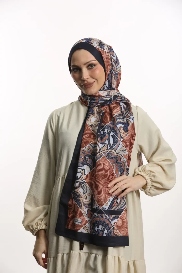 Dijital Soft Şal Patchwork Retro Etnik Desen 9022 - kevserscarf.com