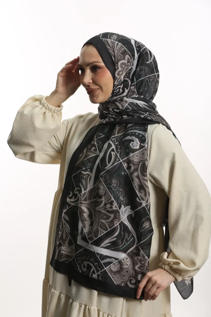 Dijital Soft Şal Patchwork Retro Etnik Desen 9047 - kevserscarf.com