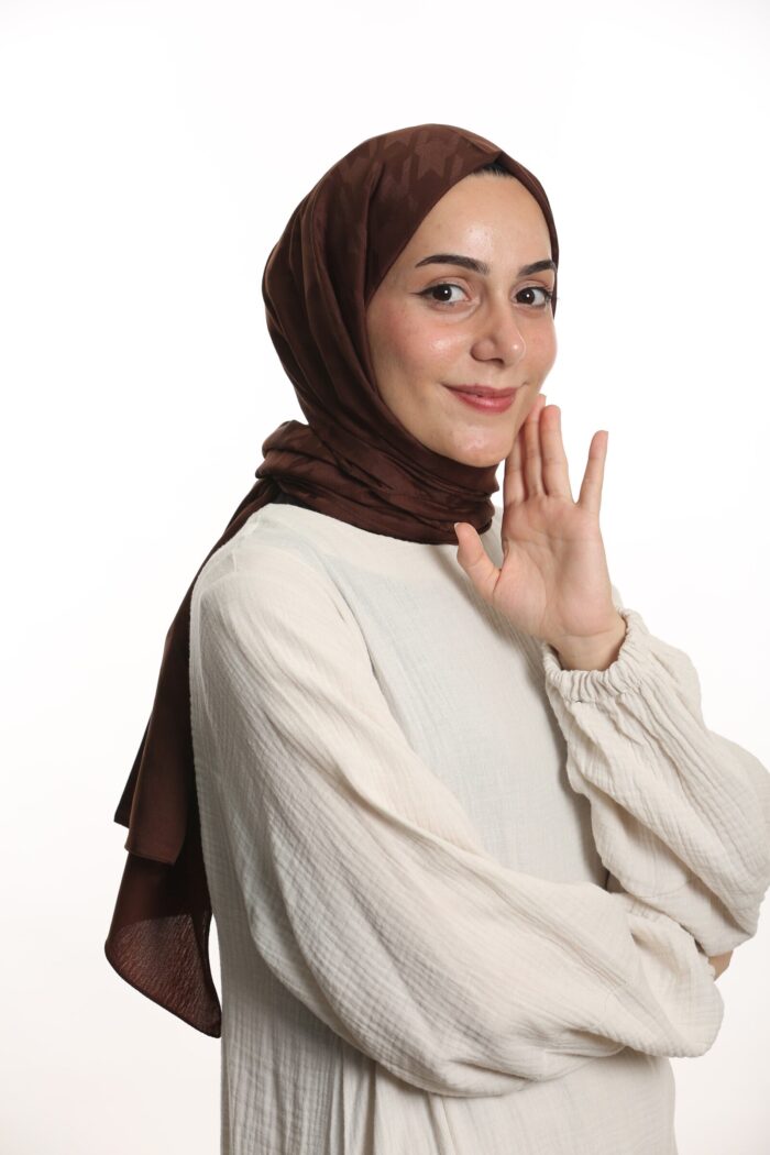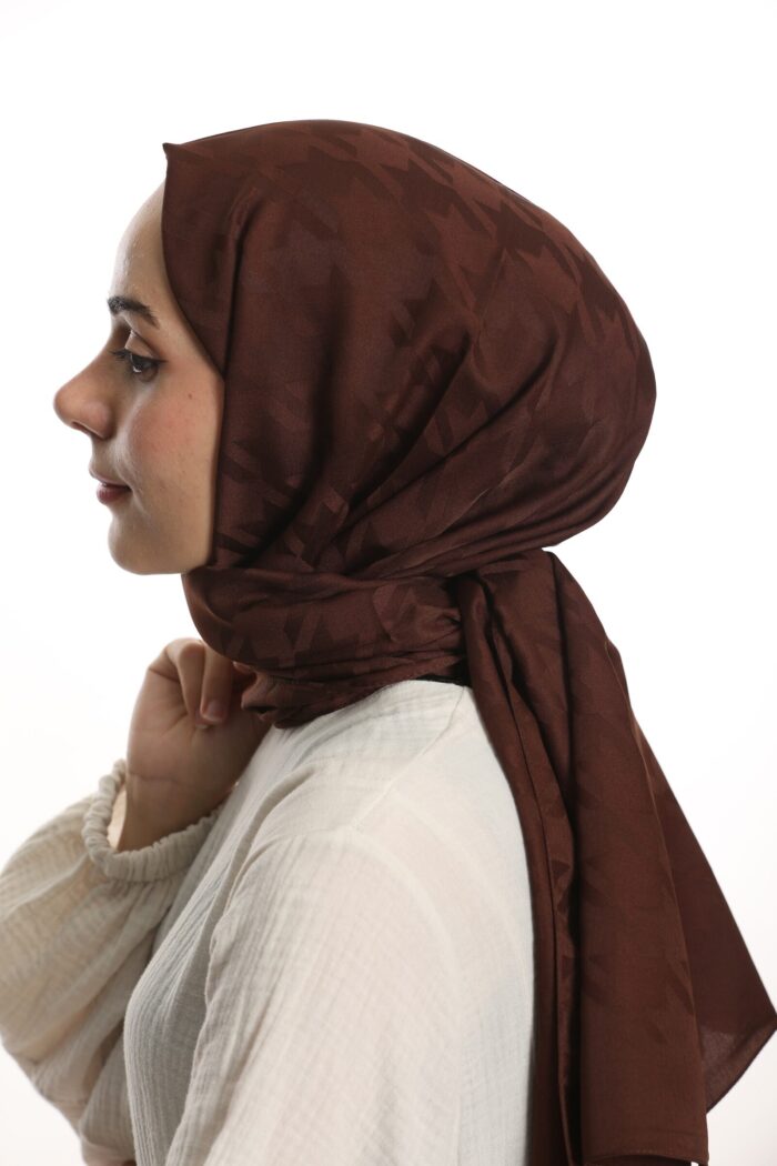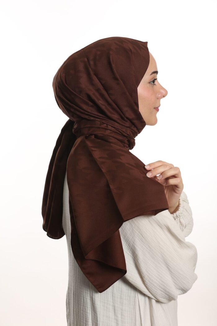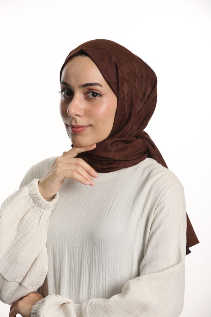 Jakar Şal Kaz Ayağı Desen Kahverengi - kevserscarf.com